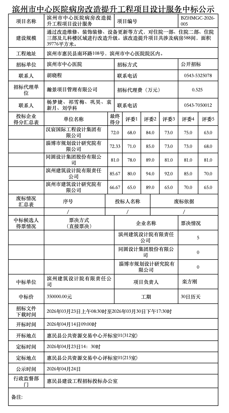 病房改造提升工程项目设计服务中标公示